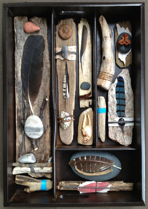 Found object assemblage triptych